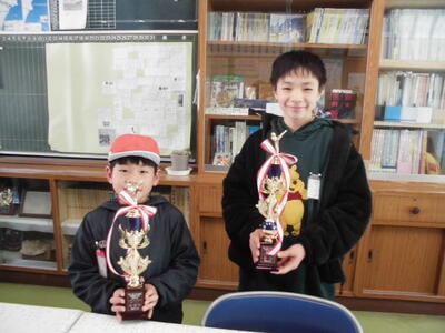 6年児童が空手の試合の報告に来てくれました。