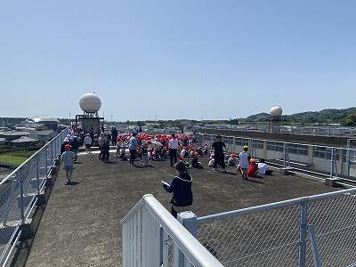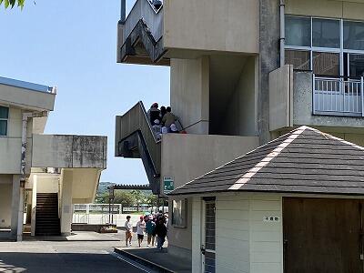 本校の全校児童と、地域の方や園児が20名ほど参加し、本校の屋上への避難を体験しました。
