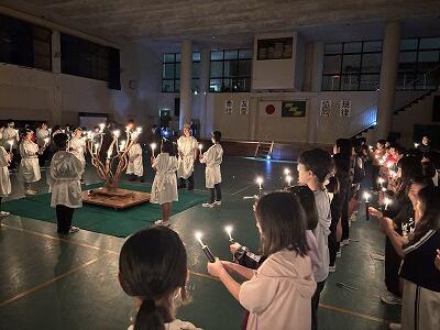 5月29日(木)と30日(金)の2日間は、5年生のむかばき宿泊学習でした。2日間ともあいにくの雨で、一部予定を変更することになりました。とくに、1日目のむかばき山登山が実施できなかったことが残念でした。2日目も雨が降りましたが、追跡ハイキングは予定通りできて良かったです。その他、キャンドルのつどいやイニシアティブゲームなど、学校ではなかなかできない体験をすることができました。このような体験を通して、規律・協同・友愛・奉仕の4つの精神を学ぶことができたようです。
