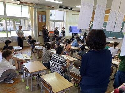 まず、幼保園の皆さんには、1年生の学習の様子を参観していただきました。