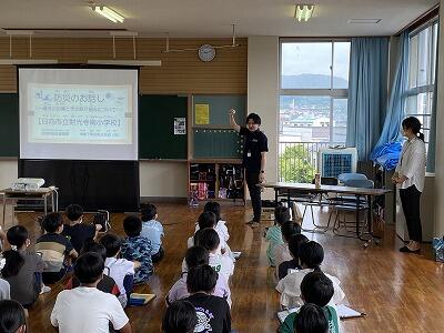 その後、市防災推進課の方から防災に関する講義を体育館で行っていただきました。