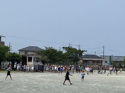先週の昼休みに、運営委員会の計画で、全校遊びをしました。遊びの内容は、「逃走中」です。6年生と先生がハンターとなり、1~5年生を捕まえるといったルールで実施しました。暑い中でしたが、全校で楽しく遊ぶことができました。「校長先生、一回も捕まらなかったよ。」「あぁ、楽しかった。」と大満足の子ども達がたくさんいました。