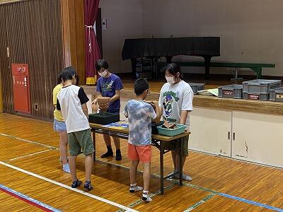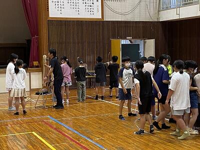 7月15日(火)に、6年生が、埋蔵文化財センターから3名の講師を招聘し、歴史学習を行いました。縄文時代・弥生時代・古墳時代について詳しいお話を聞いたり、説明に対する質問をしたりしながら、有意義な時間を過ごすことができました。教科書にはない情報が多く、大変勉強になりました。座学の後は、体験活動です。体育館に移動し、土器づくり体験や狩猟体験等をして、学習をさらに深めました。