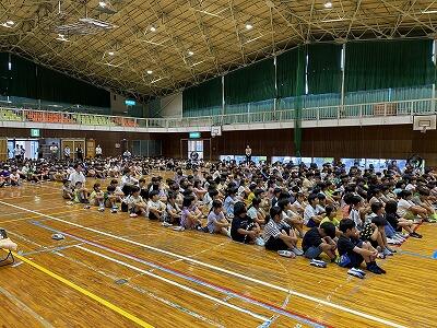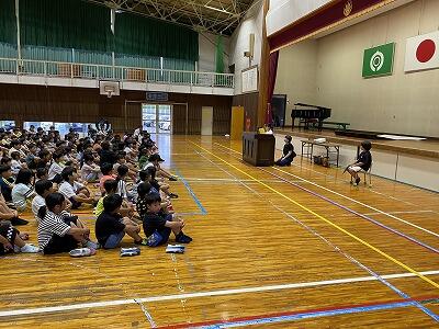 7月18日(金)は、1学期終業の日でした。2校時には、体育館で終業式を行いました。まず、2名の3年児童が、1学期を振り返ってがんばったこと等を発表しました。2名とも堂々としていて、すばらしい発表でした。その後、校長が、1学期の子どもたちのがんばりや夏休みに気を付けてほしいことについて話をしました。最後に、夏休みの生活の仕方について、生徒指導担当が話をしました。どの学年も、立派な態度で参加することができ、良い1学期の締めくくりができました。