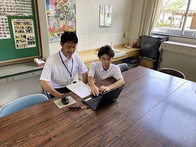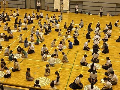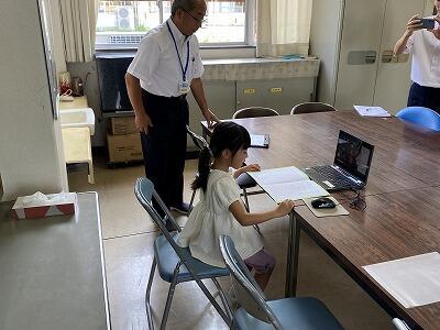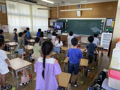 下の写真は、リモート始業式の様子です。熱中症警戒アラートが発令されていましたので、始業式をリモートで行いました。