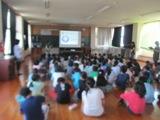 さっそく、体育館に全員集まり、全校集会を行いました。7月に比べて、ほとんどの子どもが、真っ黒に日焼けして、たいへんたくましくなっていました。元気に夏休みを過ごしていることが分かりました。