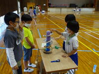 2年生は生活科で、自分たちでおもちゃを作り、1年生を招待して遊ばせてあげる学習を行っています。