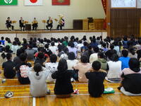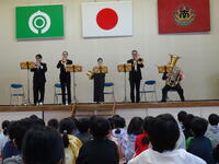 金管楽器(トランペット、ホルン、トロンボーン、チューバ)の奏でる音の美しさと迫力、音の重なりやハーモニーのすばらしさを聞くことができました。さらに、子供達に合わせた楽曲の構成で、音楽の楽しさをプレゼントしていただきました。
