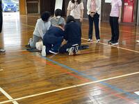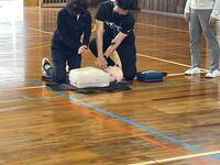 今日は、財光寺中学校で3校合同の「救命救急講習会」が行われました。