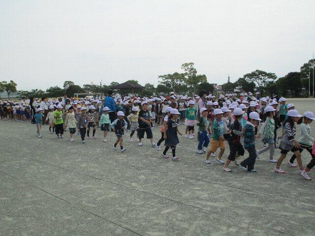 本日、地震・津波を想定した避難訓練を行いました。1次避難は運動場、そのあと、2次避難で、校舎の屋上に行きました。初めて、非常階段を使って、屋上まで行きました。屋上の高さは、海抜17mとのことです。もしものときの準備が整いました。