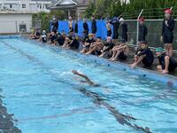 今日はよい天気になり、水温もちょうど良く、子供たちも元気に水泳学習に取り組んでいました。