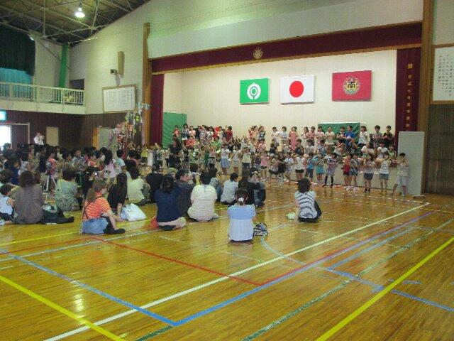 最後は、全校児童で、毎日学級で歌っている「かえりのかいのサンバ」を歌いました。さすがに、みんなで歌うと迫力がありますね!それに、踊りもはいって、みんなノリノリでした。歌い終わったあと、みんな満足そうな表情が印象的でした。