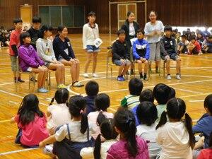 4年生は、本校の目標「あかるく」「かしこく」「たくましく」について1年生に教え、長縄大会の楽しさも表現してくれました。