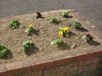 窓の外に目を向けると、花だんの花も寒さと風に懸命に耐えています。