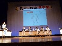 8月18日・19日にかけて、市中央公民館にて、第2回牧水短歌甲子園が開催されました。これは、郷土の歌人若山牧水にちなんで、高校生に短歌を詠みあって感性を競い合おうというものです。19日午前の準決勝・決勝を参観しました。流石に若者たち・高校生らしく素直な思いや様々な感情表現を言葉に上手に表し表現し発表していました。作品発表だけでなく、見方の批評応援や相手の作品に批評も上手に伝えることも、ポイントでした。聞いていてとても楽しくもなりました。決勝は地元の宮崎西高と沖縄の八重山商工の対決でしたが、僅差で宮崎西高が優勝しました。