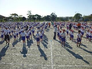 いよいよ運動会まであと1ヶ月です。18日、最初の全校体育でした。入場から開会式の一部を実施しました。これから徐々に進めていきます。特に、熱中症対策には十分気を遣っていきます。