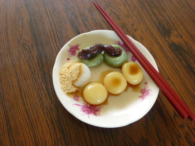 4組さんからまたまた、今回は春のお彼岸の季節。三色だんごが届きました。よもぎにきなこにみたらしです。そういえば、先週、校舎中庭で何かとってるな。よもぎかな?と思っていました。ありがとうございました。