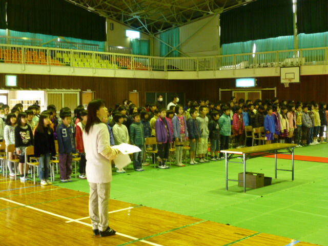 平成25年度を締めくくる「修了式」を行いました。静かに移動・待機・集合、自分たちで無言で自主的にできる子どもたちになってきました。まあ、この時期では当たり前のことなのですが、この当たり前のことが意外とできなくなっている世の中のようにも思えるのです。1年生東千里さん・3年生藤川優希さん・5年生田島小春さんが立派に意見発表しました。最後をしっかりと締めてくれました。それぞれ1学年ずつ進級します。おめでとう!
