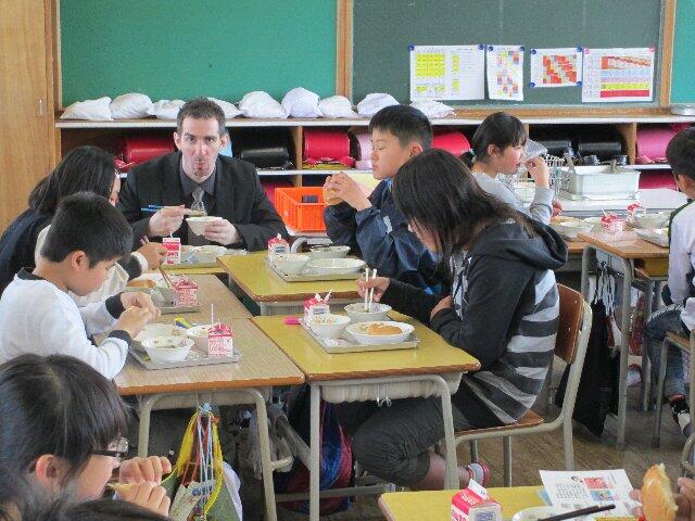 今日は、6年1組で、トニー先生は、給食をとりました。楽しい様子が、伝わってきます。