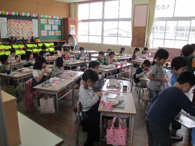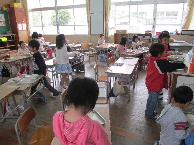 さて、11日(金)に入学した1年生は、早速、今週月曜日から給食が始まりました。今のところ、6年生のお兄さん・お姉さんが準備をしてくれています。相当、おなかがすいているせいか、早く食べたいなあという表情をどの子どもも見せてくれています。限られた時間のなかで、完食できるには、もう少し時間がかかりそうです。1年生には、ひとつひとつが、大事な勉強となっています。