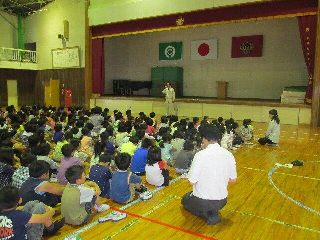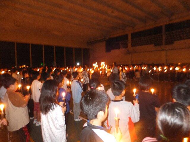 本日(6/6)、5年生が、宿泊学習から帰ってきました。初日は大雨で、予定していた追跡ハイキングができずに、室内でのゲームなどに振り替えました。2日目は、「むかばき登山」でしたが、山登りするには、まだ危険だということで、近くの展望台に登りました。僅かですが、延岡の町を一望することができました。そして、その日の夜は、「キャンドルのつどい」でした。3部構成になっており、2部の出し物では、1・2組合同で、「ボディパーカッション」を上手に踊ってくれました。大きな拍手をもらいました。