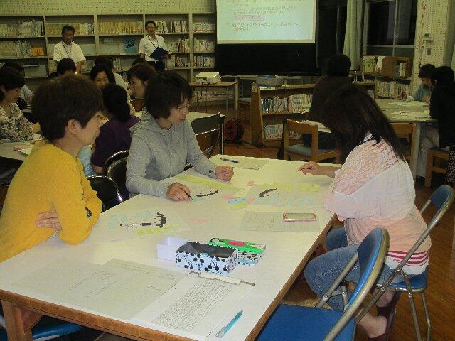 昨晩(6/26)、第2回家庭教育学級を実施しました。今回は、北部教育事務所の矢津田誠二先生と榎本英雄先生に学校に来ていただいて、「子育てに係るワークショップ」をしていただきました。4つのグループに分かれて、自分の子どもの長所、短所を述べたあとに、自分では短所と思っていたことは、見方を変えると長所にもなるということを実感する話合いをもつことができました。子育てに悩んでいるお母さん方であるだけに、時間の経過とともに熱を帯びてきました。もっと、時間があればいいのになあと思う程でした。