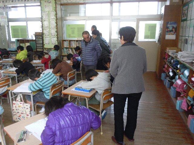 本日(12/15)、第2回の「学校評議員会連絡会」がありました。きょうは、4名の方が出席くださり、初めに授業参観をしていただきました。各学年とも、熱心に学習していました。