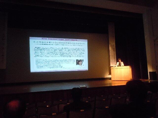 そのあと、2学期にアンケートの協力をいただいた「ネットモラル意識調査」の報告がありました。そのことを受けて、ネット教育アナリストの尾花紀子さんの基調講演があり、ネット環境の整ったこの時代に子どもたちをネット被害から守るための話を具体的にしていただきました。