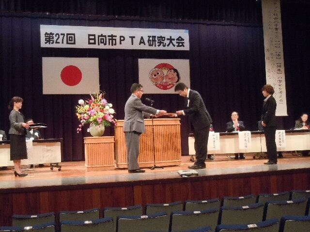 昨日(1/18)、第27回日向市PTA研究大会がありました。開会行事のなかで、平成26年度市内のPTA広報紙の表彰があり、財南小のPTA広報紙「みなみ」が、見事、最優秀賞をとりました。代表して、広報部長の大久保さんが賞状を受け取りました。