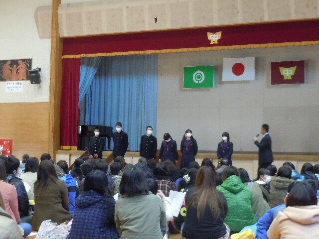 新1年生の皆さんは、体育館で現在の1年生・5年生と交流を行いました。きっと、4月の入学式が待ち遠しいことと思います。4月になるのが、いまから楽しみです。