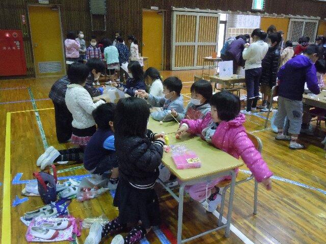 今日(2/2)、2年生が、1年生を体育館に招待して、「おもちゃまつり」を行いました。2年生が、考えた遊び~魚つりゲーム、ボーリングゲーム、紙相撲ゲーム、的あてゲーム等~を通して、1年生と交流を図っていました。2年生が、ゲームの説明を行って、1年生をしっかりリードしていたことが、とても印象的でした。
