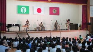 今日(6/2)、児童の心を豊かにし、表現・鑑賞の能力を培うために鑑賞教室が行われました。今回は、アフリカの音楽「魂の鼓動」として、タンザニアから来られた方が熱いリズムを奏でてくれました。冒頭から、大迫力の音響で、子どもたちも呆気にとられた感じでしたが、だんだんと曲に合わせて、踊りだす場面もありました。深く、深く、心に刻まれたようです。