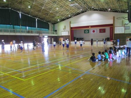 スタートの合図とともに、一斉になわとびを跳び始めました。跳び始めて、だんだんと少なくなっていきます。最後まで、跳び続けた子どもたちは、ほんの僅かとなります。今日は、1年生が、6年生が跳んでいるときの応援がすごかったです。