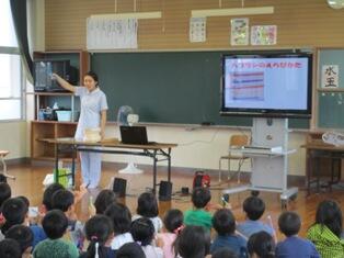今日(6/9)、1年生を対象に歯磨き指導がありました。赤木歯科医院の歯科衛生士さんに来ていただいて、正しい歯磨きの仕方を、丁寧に教えていただきました。今までの歯磨きの仕方を振り返る意味でも大変効果的でした。給食後の歯磨きから、1年生は教えてもらったことをしっかり実践していました。
