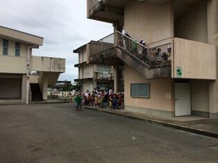 今日(6/19)、地震、津波を想定した避難訓練を行いました。5月のときの避難訓練と違って、今回は、子どもたちに、いつ避難訓練を行うか伝えてありません。昼休みの終了時刻に非常ベルを鳴らし、校内放送で避難訓練を伝えました。子どもたちは、運動場や図書室、教室などから、2棟・3棟の屋上に避難しました。初めての訓練で戸惑った子どもたちはいましたが、全員が無事に避難することができました。今回の訓練を次に生かしたいと考えています。