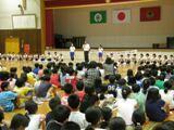 今日(7/8)、2年生の発表集会がありました。短期間の練習にもかかわらず、見事な発表をしてくれました。①鍵盤ハーモニカによる「かえるの合唱」の合奏 ②「たらこ かずのこ」の群読 ③「にぎやかな おしゃべり」のボディーパーカッション ④「メッセージ」の合唱 を2年生全員で息の合った発表をしてくれました。大きな大きな自信に繋がる発表集会になりました。