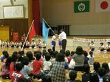 6年1組 後藤はるかさん率いる青団、6年2組 黒田ともやさん率いる赤団、今日から、熱い闘いが始まりました。団長、リーダーとも、意気込みを熱く、団員に話しかけていました。すでに、全力投球といった感じです。