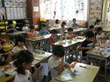 7月7日の「七夕の日」を目前にして、1年生の教室では、今日(7/3)七夕の飾りつけをしていました。一人一人、短冊に思いを込めて願い事を書いていました。「じがきれいになりますように!」「べんきょうができますように!」「かぞくがしあわせになりますように!」など、たくさんの願い事がつづられました。