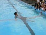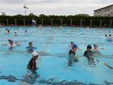 今日(7/17)、6年生は、水泳の納会を兼ねて、着衣泳法をしました。着衣泳法とは、衣服を着たまま、川や池などで溺れたとき、体力を消耗せず、助けを待つ方法です。