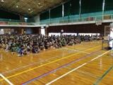さっそく、体育館に全員集まり、全校集会を行いました。7月に比べて、ほとんどの子どもが、真っ黒に日焼けして、たいへんたくましくなっていました。元気に夏休みを過ごしていることが分かりました。
