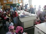 きのう(12/2)~明日(12/4)にかけて、4年生では、学級ごとに、赤木歯科医院の歯科衛生士さんに来ていただいて、歯磨き指導をしてもらっています。きのうは1組、きょうは2組の子どもたちに、正しい歯磨きの仕方を教えてもらいました。