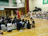 そのあと、「今月の歌」を全校児童で歌いましたが、途中、サンタクロースが飛び入りで登場して、みんなに素敵なプレゼントを届けてくれました。サンタクロースは、なんと、冬休みに使う学習帳を持ってきてくれました。“冬休みに、しっかり勉強してください”と、メッセージを残して、爽やかに、体育館から、出て行ってくれました。素敵なプレゼントに、みんな、大喜びでした!