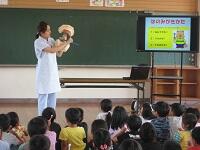歯科衛生士の方の専門的ながら、大変わかりやすい説明を子どもたちは真剣に聞き、まじめに歯磨きの練習をしていました。