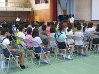体育館で、校長先生のお話、生徒会役員による学校紹介、進路説明が行われました。話を聞く姿勢やあいさつ等、大変礼儀正しく参加できていました。