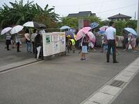 このあいさつ運動は、7月20日に財光寺中学校で行われた「豊かな心を育てる 財光寺地区実践会議」において、毎月第1月曜日に実施しようと決まったものです。