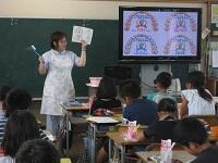 4年生の学級で、正しい歯磨きの方法を身につけさせ、歯の健康に関心をもたせることを目的に、保健指導を行いました。