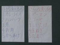 きらいな食べ物を残さず食べるにはどうしたらよいか子供たちのアイデアは「鼻をつまんで食べる」「嫌いなものを先に食べる」「牛乳といっしょに食べる」「ごはんとまぜて食べる」などなど、ユニークなものが出ていました。