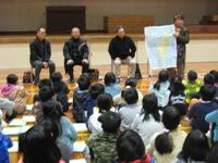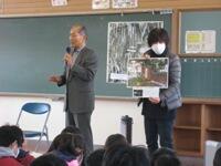 終戦の年に小学校1年生だった福田さんは、空襲が恐ろしかったことやB29が空を飛ぶ様子などを覚えていることを、また、財光寺にあった富高飛行場については、地図や写真を見せながら、ていねいに説明してくださいました。また、日向市内に残る戦跡についてお話してくださったので、身近なこととして受け止めた子供も多かったようです。