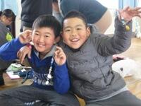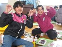 今回は、「ミツイシ」社長の黒木さんと碁石製造の作業を行っている女性スタッフを講師としてお招きして、碁石を使ったストラップと写真立てを作りました。碁石は、いろいろな大きさに磨かれ、色もピンクや青など塗られており、子供たちは、自分のイメージをふくらませながら貝殻などの材料を選んでいました。細かい作業が多く、四苦八苦しながらでしたが、個性あふれる作品が仕上がっていました。碁石は、なんとも言えないあたたかな手触りで、いつまでも触っていたくなるようでした。手作りですので、きっと大事な記念品として持ち続けるのだろうと思います。
