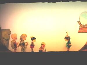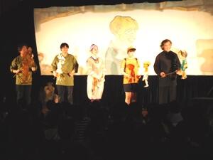影絵劇はあまりなじみがないので、白黒の世界だと思っている子供たちも多かったようでしたが、予想とは大きく違い、カラフルな世界でした。スクリーンの向こう側で、人形を巧みに操作されており、人形たちの細やかな動きとストーリーのおもしろさに、ひきつけられました。低学年の子供たちからは、盛んに歓声があがっていました。